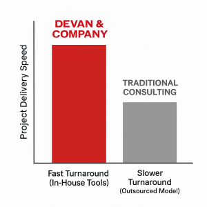 In today’s digital landscape, the race toward innovation is more critical than ever. At Devan & Company, we’re not only adapting—we’re leading the charge into the new AI age. With proprietary tech tools and deep-rooted data science capabilities, our approach redefines speed and precision, leaving traditional consulting models in the rearview mirror.